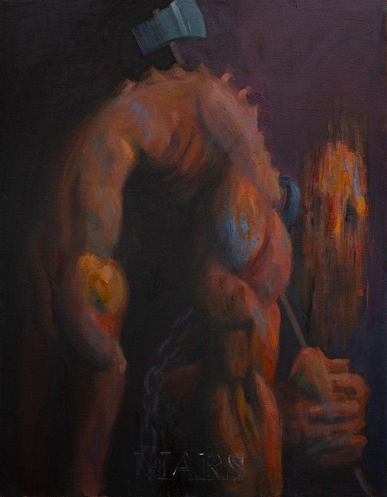 The Basement Paintings examine my observations on fear, war, and betrayal. I’ve found that in our current world, achievement and possibility are optimized and self-expression becomes a never ending pursuit. The subject, who has been told that they can do whatever their heart desires, begins to experience life as a means to expanding the self and eliminating the Other. The result of this operation is an exhaustion which sends the subject into a narcissistic bubble, in which meaningful connection is impossible. The books of philosopher Byung-Chul Han helped me articulate my thoughts on these matters. These meditations began during my time abroad in Florence, when I found that no one was willing to even acknowledge the genocide taking place in Gaza. Seeing how people could ignore such a blatant atrocity commenced my inquiry into the psychology of the modern subject. While in Europe, works by Baroque artists such as Peter Paul Rubens and Caravaggio inspired me. Francisco Goya and other Romanticists revealed to me how tone and texture could convey a story. Seeing paintings by more modern artists including Ben Shahn and Francis Bacon helped me understand how paint could be used as a tool to uncover the unconscious. By the time I returned to the States, I was ready to make a series of challenging oil paintings that would analyze the symptoms of our society. In celebration of the canon of renowned oil painters that came before me, I only use oils in these works; And I utilized the various ways in which the medium can be applied to activate an atmosphere of suffering in my works. The thick, dripping impastos bring up feelings of a world falling apart. Dry brushing and scumbling give my scenes a gritty look that reflects their somber subject matter. Throughout the works, there is a recurring color palette with psychological significance: Reds and oranges reflect the anxiety of the modern subject; The blues and greens evoke our depression. Moreover, Roman mythology and Christian imagery are desecrated to show the current realities of the ideals their deities stood for. In tending to our neuroses, The Basement Paintings welcome the viewer to sit with discomfort.